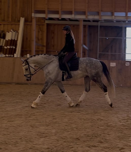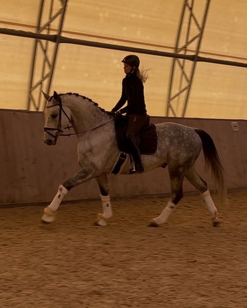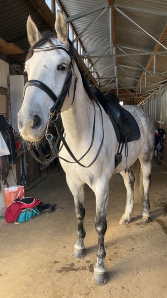 For Sale: German Sport Horse Warmblood Gelding We are offering a charming gray gelding by Sir Bedo, who impresses with his three solid basic gaits. Notably, he has a calm and balanced temperament, making him a reliable partner in any situation. In daily handling, he is always clear-headed, friendly, and straightforward. He is also considerate with children, gently guiding them through the arena. He has been trained recreationally in dressage at a secure L-level but shows great potential for further development. He is also motivated over jumps. Current X-rays are available. Please feel free to contact me for more information or if you are interested. Viewings and trial rides can be arranged by appointment.