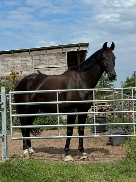 With a heavy heart, we are seeking a very special person or a loving family for our 11-year-old, impressive 1.80 m tall black gelding, who will give him the attention and affection he so richly deserves. This wonderful gelding is a true heart horse – incredibly people-oriented, sensitive, and always eager to do his best. His gentle nature and honest character make him a loyal companion with whom one can face life's ups and downs. Whether on relaxed rides in nature, during gentle groundwork, or in daily activities – he enjoys every moment with "his" person. He is confidently trained up to L** level in dressage and already performs movements of M level. He consistently shows motivation and a willingness to learn, without losing his balanced and reliable temperament. Due to his size, he occasionally experiences tension in the sacroiliac joint area, which has been treated accordingly. Current X-rays are available and show no abnormalities. With appropriate training and loving care, this can be well managed. We wish for him a home where he is not only seen as a sport partner but as a true family member – with people who recognize his special soul and appreciate him for who he is. For further information, we would be very happy to hear from you by phone at 01723125143.