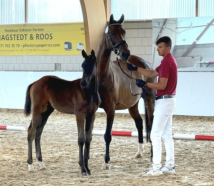 Zum Verkauf steht ein typvoller,bewegungsstarker Jährling,geb. im April 2025 mit hochinteressanter Dressurabstammung Abstammung: Vater: Lindgren ( Le Formidable x Ampere) Mutter: Batida von Borsalino Muttervaterlinie: Zonik - Diamond Hit Stamm der Neustädter P- Linie Mit dieser Abstammung vereint dieser Junghengst bewährte Dressurgenetik mit Rittigkeit, Elastizität und Leistungsbereitschaft, zudem ist er sehr menschenbezogen und brav im Umgang. Wer auf der Suche nach einem Nachwuchspferd mit Perspektive ist,sollte sich diese Chance nicht entgehen lassen. Auch Batida, die Mutter von Lorenzo steht zum Verkauf. Ein aktuelles Video ist leider zur Zeit nicht möglich. Bei ernsthaftem Interesse freuen wir uns über Ihre Kontaktaufnahme. www.pferdehofamweiler.de
