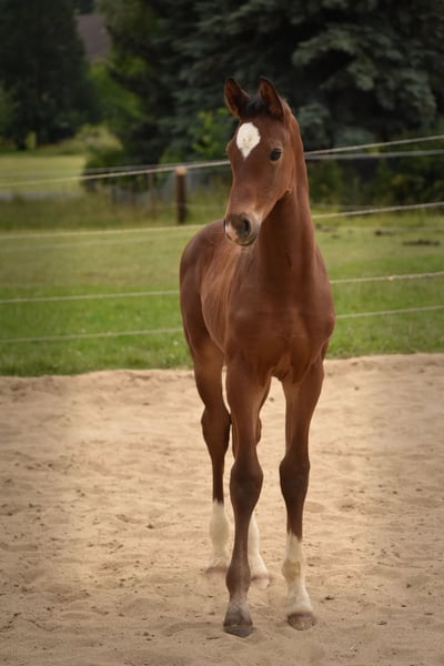 Eric vereint die besten Eigenschaften in Bezug auf Exterieur, Interieur und Bewegung in sich. Eric trägt mit dem Leistungsvererber Cor de La Bryere im Pedigree die Mehrfachveranlagung für Vielseitigkeit. Dazu kommen die Dressurveranlagung der altbewährten Vererber Estobar und Rotspon. Auch der nicht unerhebliche Vollblutanteil über die Mutterlinie steht für ein großes Leistungspotential. Eric wurde als Saugfohlen prämiert. Es besteht die Möglichkeit zur weiteren Aufzucht in unserem Stall. Anfragen per E-Mail: nickveit@web.de weitere Informationen unter: https://www.rimondo.com/de/horse-details/2680929/wallach-von-estobar-rotspon-2-jahrig