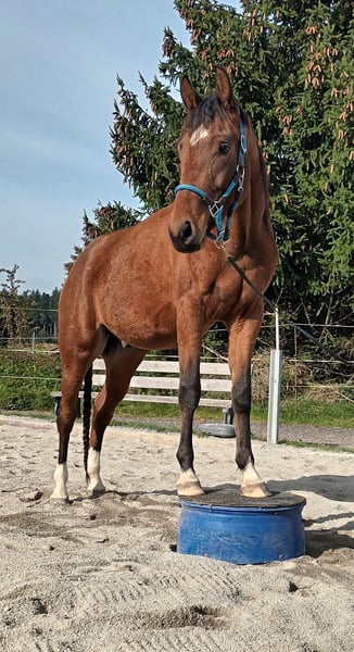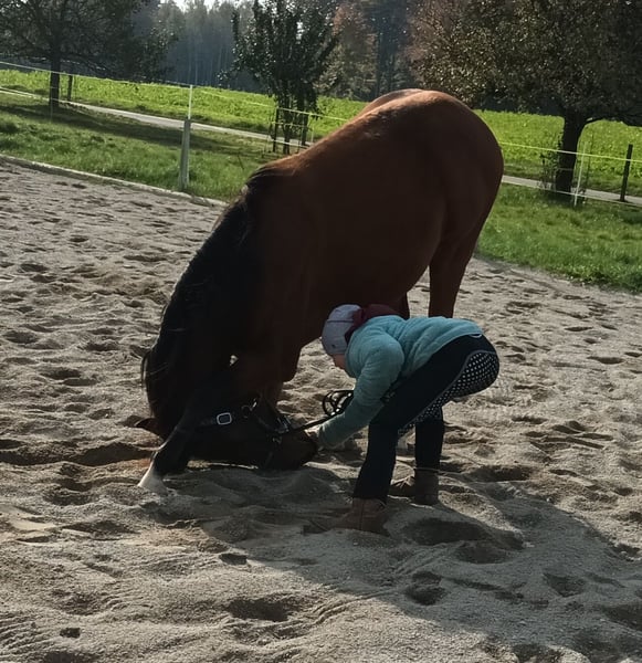 Wegen Bestandsreduzierung und ABSOLUT NUR AN BESTPLATZ sowie fördernde Hände!!!!! Geben wir unseren 2,5 jährigen, selber gezogenen Wallach ab. Total menschenbezogen, lernwillig und unerschrocken. Kann schon Ansätze von spanischen Schritt, Verbeugung und geht aufs Podest. Kennt alles, was so auf einem Hof herumfährt und springt. Kann von einem 10 jährigen Kind aufgehalftert und geführt werden. Ich denke die Bilder und Videos zeigen mehr als geschriebene Worte... Hufe wurden regelmäßig bearbeitet. Entwurmung 2x jährlich.