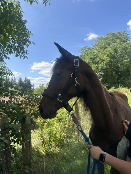 Verkaufe deutsches Sportpferd – Dressurqualität Zum Verkauf steht ein vielversprechender deutscher Sportpferd-Wallach, geboren im Jahr 2024. Das edle Tier besticht durch sein elegantes, dunkelbraunes Erscheinungsbild und seine hervorragenden Bewegungen, die es perfekt für den Dressursport machen. Der junge Wallach zeigt eine vielversprechende Grundausbildung und ist ideal für ambitionierte Reiter, die ein talentiertes Pferd für den Aufbau auf höherem Niveau suchen. Sein angenehmer Charakter und seine Lernbereitschaft machen ihn zu einem zuverlässigen Partner im Training und Wettkampf. Bei Interesse oder weiteren Informationen stehe ich gerne zur Verfügung. Vereinbaren Sie gerne einen Termin für eine Besichtigung und eine Proberunde.