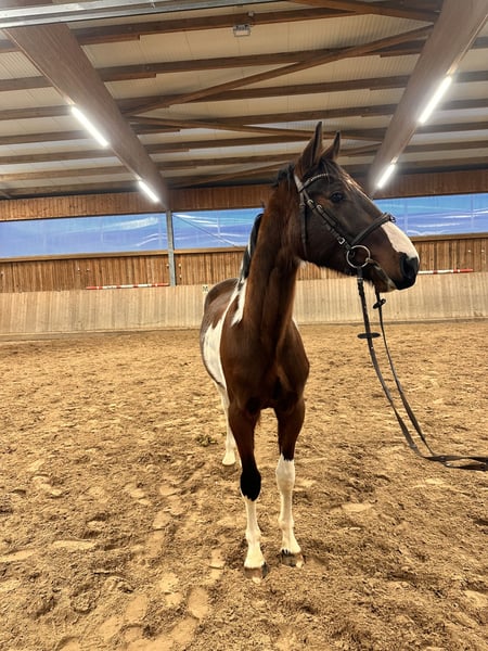Zum Verkauf steht ein 3-jähriger Wallach aus der Anpaarung Syltwind x Quidamo / Argentinus mit einem aktuellen Stockmaß von ca. 1,63 m. Er überzeugt durch ein modernes Exterieur und eine angenehme Art im Umgang. Im Freispringen zeigt er gute Übersicht, ist aufmerksam, vorsichtig und verfügt über eine ordentliche Technik. Seine Abstammung bietet eine solide Grundlage für eine weitere sportliche Ausbildung. Der Wallach ist geimpft und frisch entwurmt, schmiede- und verladefromm und zeigt sich im Alltag brav, unkompliziert und menschenbezogen. Ein interessantes Nachwuchspferd für den Springsport oder die vielseitige Ausbildung, geeignet für Reiter, die ein junges Pferd in Ruhe weiter fördern möchten. 📞 Kontakt & Besichtigung Anfragen bitte ausschließlich telefonisch: 📞 0341 / 98995223 🕘 Mo.–Fr. 09:00–21:00 Uhr 🕘 Sa. 09:00–20:00 Uhr 🕘 So. 09:00–17:00 Uhr ⸻ 🐎 Probereiten & Vorführung 💶 Probereiten: 30 € pro Pferd (max. 2 Reiter) → wird bei Kauf angerechnet 💶 Feiertage: 50 € Absagen bitte mindestens 24 Std. vorher, andernfalls wird der Termin berechnet. 💶 Vorführen durch unsere Bereiter (ohne Probereiten / Bodenarbeit etc.): 25 € pro Pferd ⸻ Ankaufsuntersuchungen sind in jedem Umfang möglich – gerne durch Ihren oder unseren Tierarzt. Transport ins neue Zuhause kann auf Wunsch organisiert werden. 💶 PK 8 📍 Standort: Raum Leipzig 🌐 www.deutsche-pferde-boerse.de Hinweis: Stockmaßangaben sind Schätzungen des Verkäufers und stellen keine zugesicherten Eigenschaften dar.