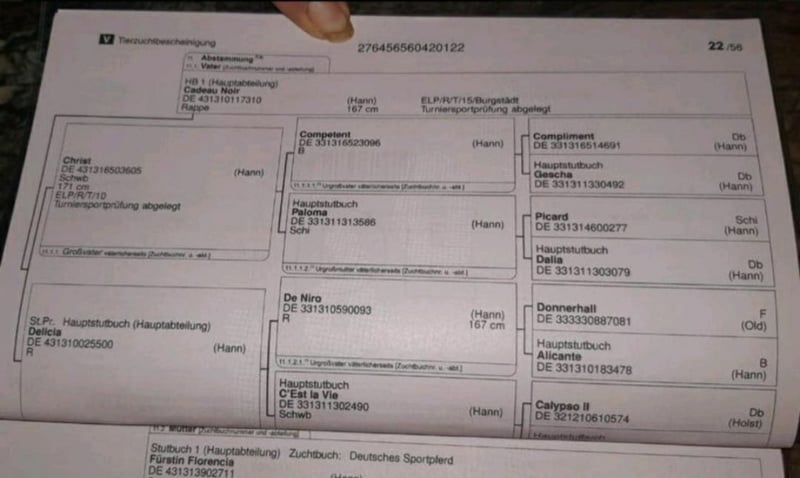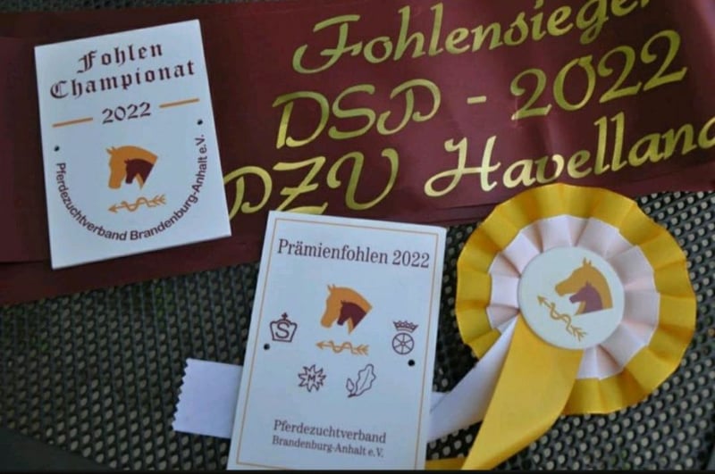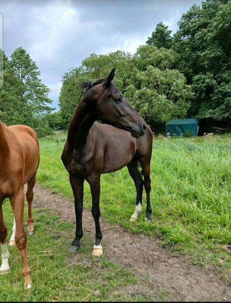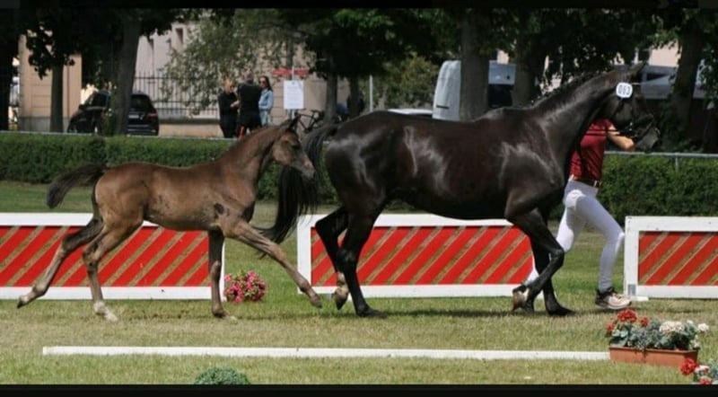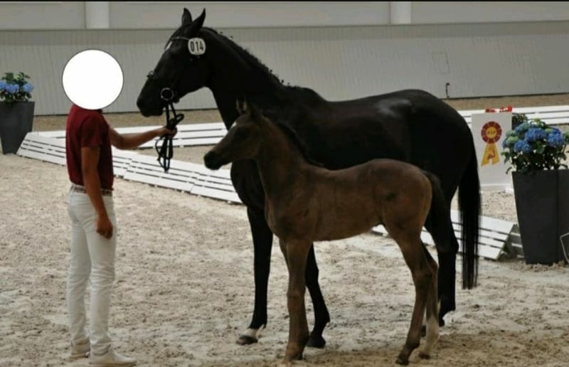 Bildschöner Wallach von Cadeau Noir aus einer Fürst Nymphenburg x Silvio I Stute. Caillou konnte seine erste Goldene Schleife auf der Fohlenschau des Gestütes Bonhomme gewinnen und ist dort DSP-Siegerhengst der dressurbetonten Hengstfohlen geworden. Der Hengst Cadeau Noir von Christ x DeNiro stempelt hier seinen Nachkommen mit seiner typisch ausdrucksstarken Schönheit sowie einem erstklassigen Bewegungsablauf. Mit mehreren Siegen im GrandPrix ist Cadeau Noir eine Klasse für sich. So konnte Cadeau die letzte schweren Prüfungen in Neustadt Dosse für sich entscheiden. Ganz aktuell gewann Moritz Treffinger Doppelgold in der deutschen U25 Meisterschaft. Vor wenigen Tage wurden sie TeamEuropameister der U25 und im Einzel VizeEuropameister. Die allergrößten Hoffungen auf das große Viereck, machen den Wallach für sportliche Reiter sehr interessant. Ein tolles Pferd auch für ein Mutter-Tochter-Gespann. Da er ein junges Pferd ist, möchten wir ihn an erfahrene Reiter oder mit entsprechendem Trainer abgeben. Aktuell steht er auf Koppel bei Wittstock und seine reiterliche Laufbahn kann beginnen. Er kann auch gern noch ein paar Monate hier auf Koppel stehen, bis du mit der Ausbildung beginnen möchtest. !!! Es ist uns wichtig, dass er in fördernde Hände kommt, dann können wir gern was am Preis machen. Caillou Noir lässt sich sehr gut führen und verladen. Die vollständigen Papiere finden Sie in den Dokumenten. Weitere Informationen erhalten Sie auf Anfrage