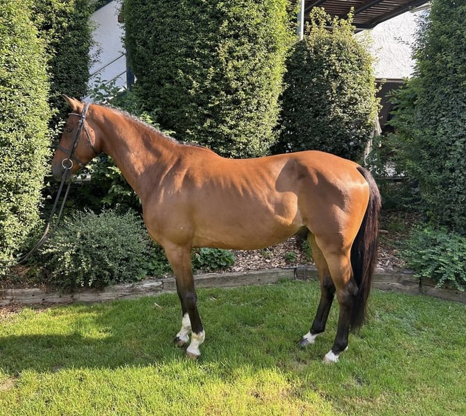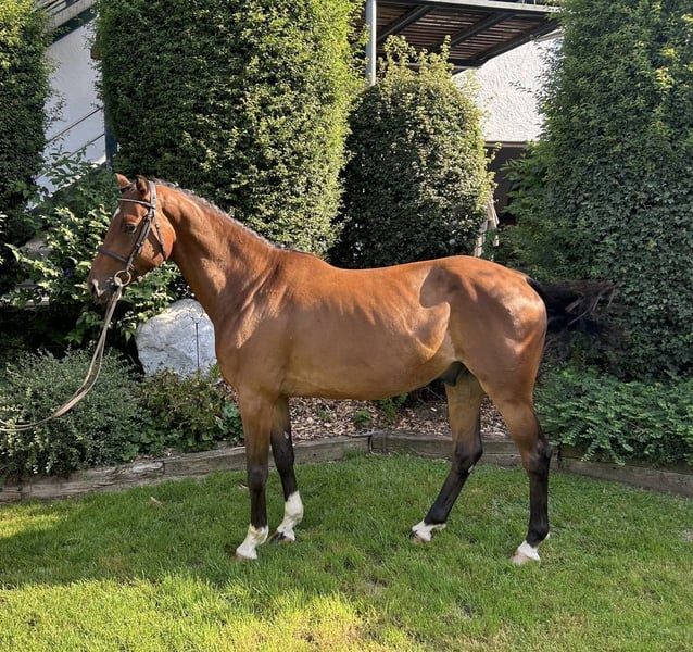 Direkt vom Züchter steht dieser typvolle 4 jährige DSP Wallach von Diarado, MV: Riverman, Stockmaß aktuell ca. 1.60m, zum Verkauf. Seine Mutter Belmont Virlandie war bis S-Niveau im Springen und auf CCI3*-S Niveau in der Vielseitigkeit erfolgreich und platziert. Vater Diarado von Diamant de Semilly war selbst bis 1,50 m erfolgreich und zählt zu den gefragtesten Vererbern seiner Generation. „Dobby“ ist angeritten und zeigt bereits die ersten Sprünge unter dem Sattel. Er überzeugt dabei mit Lernwilligkeit, Kooperationsbereitschaft und Fleiß. Im täglichen Umgang präsentiert er sich angenehm und unkompliziert. Auch seine ersten Ausritte in Begleitung hat er ruhig und vertrauensvoll gemeistert. Ein junger, interessanter und unkomplizierter Wallach mit viel Perspektive für alle Sparten, der auf seinen passenden Partner wartet, aber aufgrund seines Alters noch nicht für Anfänger geeignet.