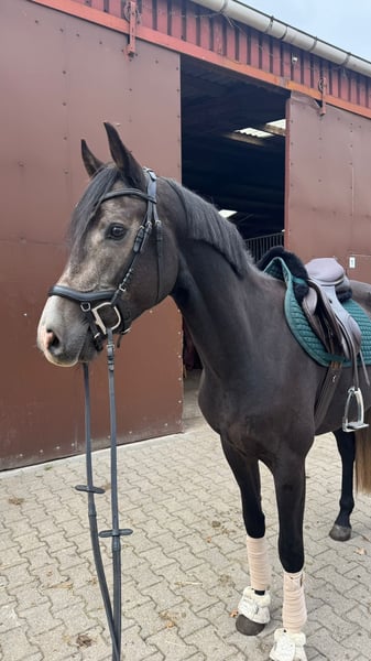For sale is this 2022-born son of Hickstead Blue out of Monte Cain. This gelding already feels confident under saddle and has completed his first jumps with a rider. Despite his young age, he demonstrates good awareness and a lot of potential at the jump. Have we piqued your interest? Please contact us; we are happy to answer any questions! Additionally, we have several other quality horses available that might interest you. Laura Waldmann 0162 9457909 Amelie Schunke 0151 42463745