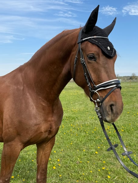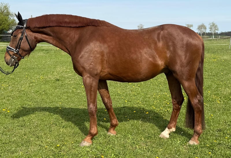 Na sprzedaż wystawiony jest 4-letni wałach o obecnej wysokości w kłębie 1,63 m, bezpośrednio od hodowcy. Do sierpnia 2025 roku przebywał w grupie hodowlanej, gdzie dorastał w bardzo delikatny sposób. Z niewyjaśnionych przyczyn na pastwisku doznał połowicznej porażenia twarzy (w tym czasie nie było widocznych żadnych urazów ani chorób). Natychmiast podjęto leczenie weterynaryjne, niestety do dziś nie zaobserwowano poprawy. Przeprowadzono badania rentgenowskie oraz endoskopię, które nie wykazały żadnych nieprawidłowości. W codziennym użytkowaniu oraz podczas jazdy nie ma żadnych ograniczeń i nie wymaga żadnych leków – jest to wyłącznie DEFekt estetyczny. Zna lonżę, podwójną lonżę oraz ciężar jeźdźca. W styczniu 2026 roku został wykastrowany. Niestety nie mamy wystarczająco czasu na dalsze szkolenie, dlatego oferujemy go jako surowego. Może być normalnie wytrenowany bez żadnych ograniczeń. Nie ma problemów z pobieraniem pokarmu, język nie wystaje na zewnątrz. Posiada trzy bardzo dobre podstawowe chody i był championatem w Moritzburgu. Charakter ma niezwykle ujmujący, jest bardzo spokojny w obsłudze i absolutnie posłuszny. Regularnie jest szczepiony i odrobaczany. Szukamy kochającego właściciela, dla którego jego drobny defekt nie będzie problemem – być może nerv potrzebuje czasu na regenerację, a wszystko z czasem się ułoży. Oczywiście istnieje taka możliwość. W razie zainteresowania prosimy o kontakt, chętnie również telefonicznie, aby wymienić się informacjami. Więcej zdjęć i filmów dostępnych na WhatsApp po poważnym zainteresowaniu.