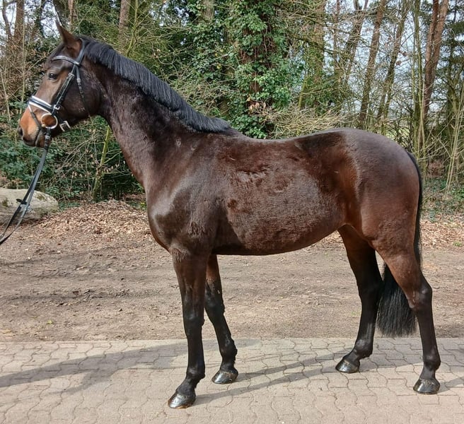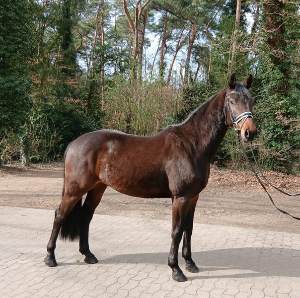 Viva Spezial ist ein eleganter Wallach mit einem Stockmaß von ca. 1,63 m – ein ideales Damenpferd, das Sportlichkeit und Sensibilität auf harmonische Weise vereint. Direkt vom Züchter stammend, ist er unter besten Bedingungen aufgewachsen und überzeugt heute durch seine Verlässlichkeit, Rittigkeit und seine feine Einstellung zur Arbeit. Viva Spezial ist aufmerksam, lernt schnell und reagiert sensibel auf seinen Reiter. In den richtigen Händen entwickelt er sich zu einem leistungsbereiten Partner mit echter Bindungsqualität. Unter dem Sattel zeigt er sich motiviert, angenehm zu sitzen und mit gutem Go ausgestattet, ohne dabei die Kontrolle zu verlieren. Er verbindet Rittigkeit mit innerer Ruhe und bietet somit eine tolle Grundlage für die weitere sportliche Förderung. Auf einen Blick: • Ca. 1,63 m Stockmaß – sportlicher Damenwallach • Direkt vom Züchter, beste Aufzuchtbedingungen • Sehr brav und umgänglich im täglichen Handling • Rittig, mit gutem Go und Lernbereitschaft • Feinfühlig und aufmerksam unter dem Reiter • Für ambitionierte Freizeitreiter und fördernde Hände • Verlässlich im Gelände und auf dem Platz • Schmiede- und verladefromm Preis zzgl. gesetzlicher MwSt.