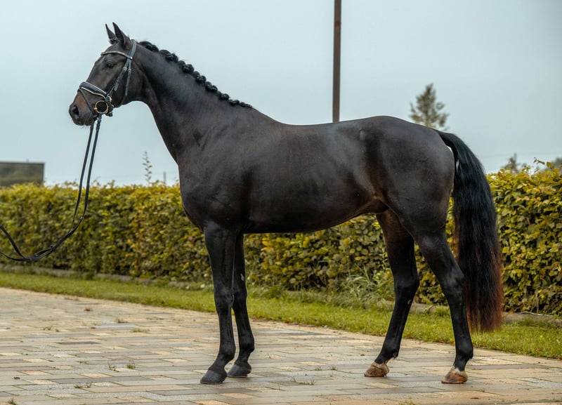 Hier geht's zur Kollektion und Online-Registrierung: https://auktion.pzvbw.de/auctions MwSt. 19 % Ausdrucksstarker, talentierter Dressurnachwuchs mit allerbesten verwandtschaftlichen Referenzen. Seine Mutter brachte bereits den bis S*** siegreichen Venecio, aus der Großmutter stammen der Grand Prix erfolgreiche Meggle’s FS Lennox Louis sowie der gekörte und S**-Dressur erfolgreiche Vererber Lord Loxeley. Expressive, talented dressage offspring out of one of the most successful dressage lines. His dam already produced Venecio, a winner up to S*** level, and his granddam is the dam of Grand Prix-winning Meggle‘s FS Lennox Louis, as well as the licensed and S** dressage-winning sire Lord Loxeley.
