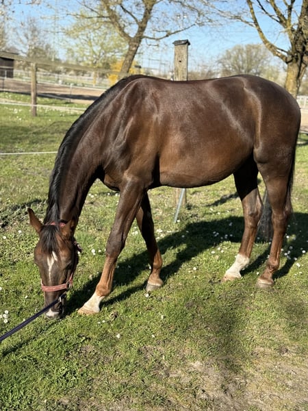 Talisman ist ein 4-jähriger Dunkelfuchs aus eigener Zucht, der mit viel Qualität, Arbeitsbereitschaft und einem feinen Ansprechverhalten überzeugt. Er befindet sich altersgerecht in der Ausbildung und zeigt sich dabei leistungsbereit, sensibel und mit guter Grunddynamik ausgestattet. ✨ Charakter & Typ: • fein an den Hilfen • aufmerksam und reaktionsschnell • lernwillig und mit klarem Kopf • kein „abgestumpftes“ Pferd, sondern ein echter Partner für die feine Reiterei er ist für jeden „Spaß“ zu haben, wenn man weiß was man tut und mit einem Jungpferd umgehen kann. ✨ Ausbildungsstand: • seit einem 3/4 Jahr unterm Sattel • geht ins Gelände • kennt Doppellonge und Stangenarbeit • Schmiede - und verladefromm und unkompliziert im Handling Unter dem Reiter zeigt er sich absolut kooperativ und leistungsbereit und bringt alles mit, um sich zu einem tollen Sport- oder gehobenen Freizeitpartner zu entwickeln. ✨ Für wen geeignet: • erfahrene Reiter mit Gefühl • ambitionierte Freizeitreiter oder Turniereinsteiger • Menschen, die Freude daran haben, ein junges Pferd weiter zu fördern Wir wünschen uns für Talisman einen Platz bei einem Reiter, der sein Potenzial erkennt und ihn mit Ruhe, Klarheit und Erfahrung weiter ausbildet. Platz vor Preis!
