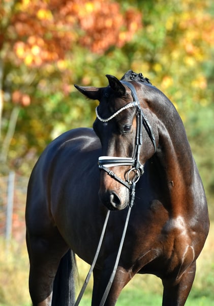 What a wonderful gelding! This 4-year-old son of Confess Colour comes directly from the breeder and has been nicely backed and trained here so far. He impresses with incredible movement quality—always moving with plenty of rhythm and elasticity in his trot, accompanied by a beautiful uphill canter and a relaxed, steady walk, as well as excellent rideability—well-behaved in the hand and easy to sit. He is also a dream in everyday handling, always calm and composed; he handles washing, grooming, unfamiliar surroundings, etc., with great patience and confidence. We recently took him to his first competition, where he performed very well in a riding horse test with a score of 7.7. A real hidden gem for future training! No problem with trail riding, loading, turnout, etc. A current health certificate, including back and neck, is available. A dream horse! Price range €25,000–€30,000.
