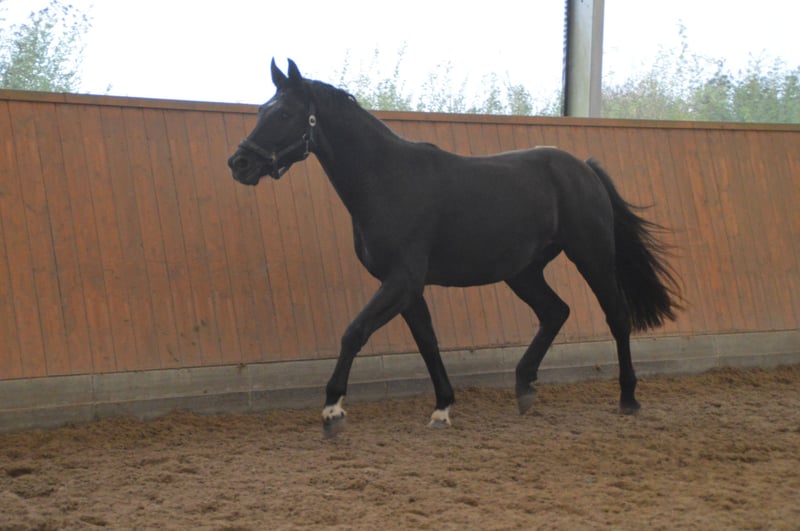 Verkaufe deutsches Sportpferd – Rappe, Wallach, Geburtsjahr 2022 Zum Verkauf steht ein eleganter und vielseitiger deutsches Sportpferd-Wallach. Geboren im Jahr 2022, überzeugt er durch sein freundliches Wesen und seine beeindruckende Erscheinung. Mit einem Stockmaß von 165 cm bietet er die perfekte Größe für Freizeit und leichte sportliche Aktivitäten. Der Rappe ist aufmerksam und zeigt viel Potenzial für die Freizeitgestaltung. Er eignet sich sowohl für ambitionierte Freizeitreiter als auch für den Einstieg in den Sport. Sein angenehmes Temperament macht ihn zu einem zuverlässigen Begleiter. Bei Interesse oder weiteren Fragen stehe ich gerne zur Verfügung. Vereinbaren Sie gerne einen Termin für eine Besichtigung und Proberitte!