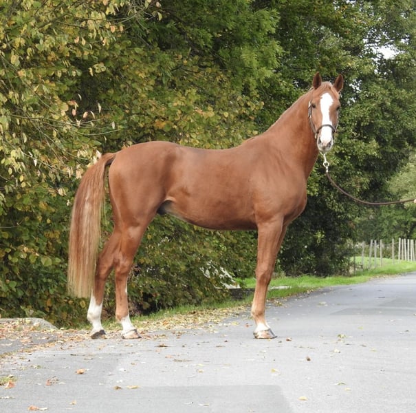 ❗️Nous demandons, en raison de la charge de travail élevée, de ne faire que des demandes par téléphone.❗️ À vendre, un hongre alezan de 4 ans avec une taille actuelle d'environ 1,66 m. Le hongre provient directement de l'élevage et est très bien éduqué dans le quotidien. Il a montré dès le départ des capacités de saut libres au-dessus de la moyenne et connaît déjà le travail à la longe ainsi que le poids du cavalier. En raison de circonstances personnelles, la décision de vendre a été prise avec un immense chagrin. Sans contact téléphonique préalable, nous ne ferons pas d'envois de vidéos de nos chevaux, merci donc de ne pas demander "merci d'envoyer une vidéo". Les visites sont possibles à tout moment. Pour toute question, nous sommes disponibles par téléphone au 0171 530 33 40. Tous les droits sur les images appartiennent à Sport- und Freizeitpferde Wilfried Oestersandforth. Toute diffusion ou publication est strictement interdite.