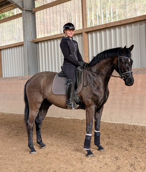 Souvenir ist ein rittiger, braver Wallach im kompakten Format, der aber durch seine Statur auch gut abdeckt. Mit seinen drei sehr guten, praktischen Grundgangarten und der einfachen Anlehnung, ist er ein Ausbildungspferd für Amateure, als auch für Profis. Er ist sitzbequem, immer gut im Takt, im Galopp immer geschlossen und bergauf. Der Schritt lässt auch keine Wünsche offen. Gerne können wir Termin vereinbaren zum Kennenlernen. 0170-3047574