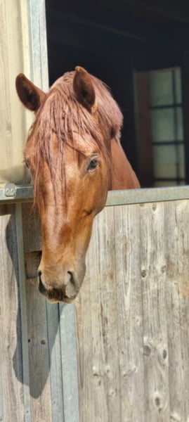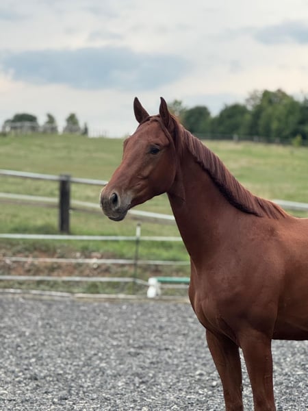 For sale: German sport horse gelding – by VaBene out of a double-licensed mare by Viscount x Balou du Rouet, born in 2022, dark chestnut We are offering a promising German sport horse gelding, born in 2022. With an approximate height of 16.1 hh, he offers the ideal size for an ambitious rider. He is expected to reach around 16.2 hh. The horse has a beautiful dark chestnut coat and has been selectively bred for dressage with jumping genes. He demonstrates good basic quality, correct and solid conformation, and three very good basic gaits, combined with a pleasant temperament. He is very easy to handle, halter-trained, and farrier-friendly. During the day, he is very social when turnout with other horses, and he is stabled at night. An ideal prospect to start riding training now. If interested or for further questions, please feel free to contact me. Viewing and trial rides are available by appointment.