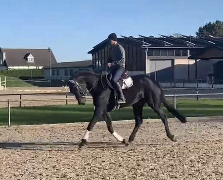 Hübscher, moderner Dressurpferdetyp mit Perspektive.