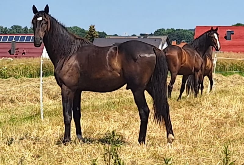 Dieser bildhübsche, langbeinige Sir Graditz (Sezuan)-Nachkomme ist nun bereit gefördert zu werden. Er besticht nicht nur durch sein außerordentlich hübsches Exterieur, sondern auch durch seine sehr gute Qualität. Er wurde als Championats Fohlen prämiert mit 8er und 9er Noten für Typ/Exterieur/Bewegung.. Er ist sehr umgänglich und immer freundlich gegenüber dem Menschen und sehr verträglich in der Herde. Er wurde im Offenstall mit gleichaltrigen Pferden groß gezogen und ist bis heute immer gesund gewesen. Er wurde regelmäßig entwurmt, geimpft und dem Schmied vorgestellt. Ein tolles Ausbildungspferd für die nächste Saison.