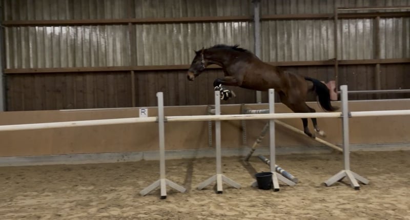 Zu verkaufen steht ein schicker, kompakter, selbstgezogener, 4-jähriger, 1,80m großer Wallach. „Farciro MG“ ist abstammend von Casiro I aus einer Naldo Mutter. Er ist mit 3 sehr guten Grundgangarten ausgestattet, zeigt sich im Umgang stets unkompliziert und beim Reiten sehr rittig und hat keine Unarten. Farciro konnte sich bereits in einer Reitpferdeprüfung präsentieren, war dort stets brav und bestätigt damit seine Qualität auch unter Turnierbedingungen. Erste kleine Sprünge unter dem Reiter hat er bereits souverän absolviert und zeigt dabei Übersicht und Vermögen. Farciro MG ist ein vielseitiger Nachwuchssportler mit vielseitiger Perspektive. Er eignet sich aufgrund seiner Rittigkeit auch für ambitionierte Amateure mit bereits Reiterfahrungen. Bei ernsthaften Interesse freuen wir uns auf Ihre Kontaktaufnahme.