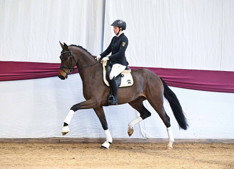 Der elegante Sohn des Bundeschampions Damaschino aus bester württembergischer Stutenfamilie bewegt sich bergauf, mit guter Hinterhandaktivität und attraktiver Vorderbeinmechanik. Stets bei der Sache und gut gelaunt, ein Ausbildungspferd par excellence! https://auktion.pzvbw.de/auctions/