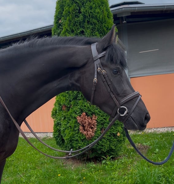 **Sales Listing: German Sport Horse** For sale is a stunning 2021-born gelding. He has an elegant black coat and stands at 15.3 hh. This charming gelding is ideal for leisure riding and is ready to embark on new adventures with a caring owner. He is well-mannered, personable, and remains calm in all situations. Please feel free to contact us for more information or if you are interested!