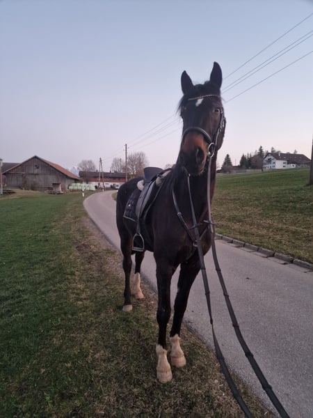 Mega lieber Wallach bereits angeritten. Vielversprechende Abstammung ( Donnerhall, Don Schufro Mütterlicherseits sowie fürst Samarant, For Romace I Väterlicherseits ) Gern vorbeikommen und anschauen 5 Jahre alt Angeritten läuft Schritt Trab Gallopp unterm Sattel, kennt Ausreiten und Bodenarbeit. Zeigt sich steht's bemüht und willig neues zu lernen. Standort Memhölz Rasse: Deutsches Sportpferd Stm: circa 160 cm Preis auf Anfrage Ich muss ihn leider abgeben da ich durch meinen neuen Job nichtmehr so viel Zeit habe.