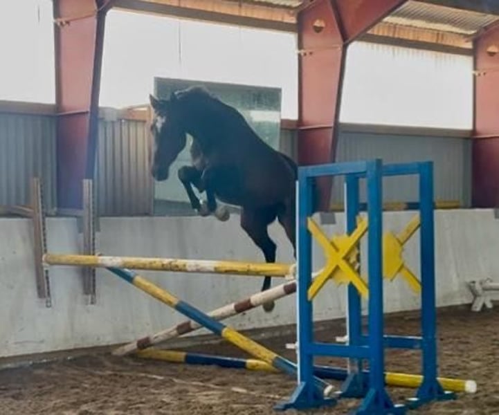 **Sales Advertisement: German Sport Horse** For sale is a talented German Sport Horse gelding, born in 2021. **Features:** - **Color:** Bay - **Height:** 162 cm - **Discipline:** Show jumping This young gelding impresses not only with his remarkable stature but also with his great potential in show jumping. He already shows promising approaches and is ready to be further developed by an experienced rider. He is well-mannered, well-educated, and has a friendly character. Ideal for riders looking for a promising horse for the future. If you are interested or need further information, please feel free to contact me.