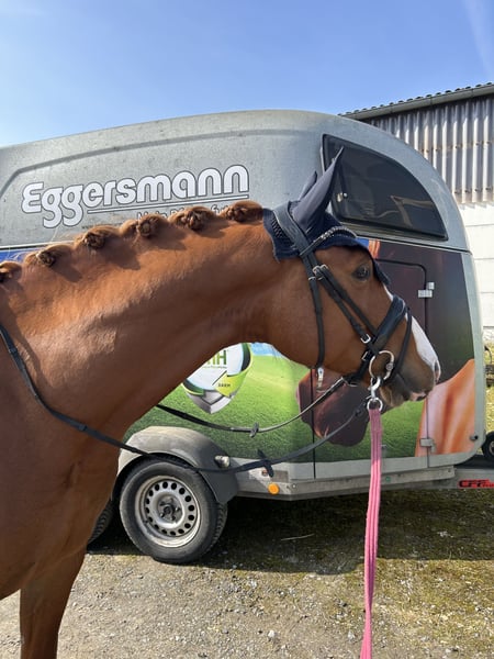 Claus ist ein absoluter Prachtkerl. Im Hengsttyp stehend und bildschön präsentiert sich dieser tolle Wallach. Er steht ganz am Anfang seiner sportlichen Karriere und hat sich bisher nicht einen falschen Tritt geleistet. Absolut klar im Kopf und lieb im Umgang. Er ist vollständig geimpft, immer entwurmt und läuft barhuf. Claus wird im Auftrag des Züchters verkauft. Wir haben ihn schonend angeritten und mittlerweile macht er die ersten Sprünge unter dem Sattel. Baumstämme hat er auch schon kennengelernt und absolviert diese anstandslos. Auch unter dem Dressursattel macht er eine super Figur. Claus hat bereits einen Tüv. Er hat einen unbedenklichen Chip. Bei ernsthaften Interesse verschicke ich gerne den Tüv und Videos unter dem Sattel. Aktuell wird Claus auf sein erstes Turnier in wenigen Wochen vorbereitet. Zwei Brüder von Claus gehen erfolgreich im Sport. Einer bis 1.45m und einer bis 1.40m. Der eine Bruder steht auch bei uns im Stall und befindet sich in unserem Besitz.