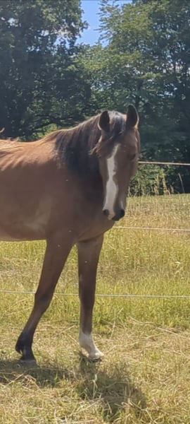 "Cammi" stammt aus eigener Zucht und wuchs im Offenstall mit täglichem Weigdegang in der Herde auf. Zurzeit wird er schonend angeritten und zeigt sich hier von Anfang an sehr brav und lernwillig. Er zeichnet sich im täglichen Umgang durch seinen tollen Charakter aus. Er ist ein rahmiges Pferd mit einer auffällig, bunten Färbung. Das fuchsfarbene Fell wird durch die fast schwarze Mähne und den ebenson dunkeln, mit hellen Strähnen durchzognen Schweif zu etwas ganz Besonderen. Seine raumgreifenden GGA, vorallem der Galopp und seine Potenzial am Sprung lassen für den Springsport Großes erwarten. Vater Camebridge hat Erfolge bis Klasse S*****. Seine Mutter lief Parcours bis 110cm.
