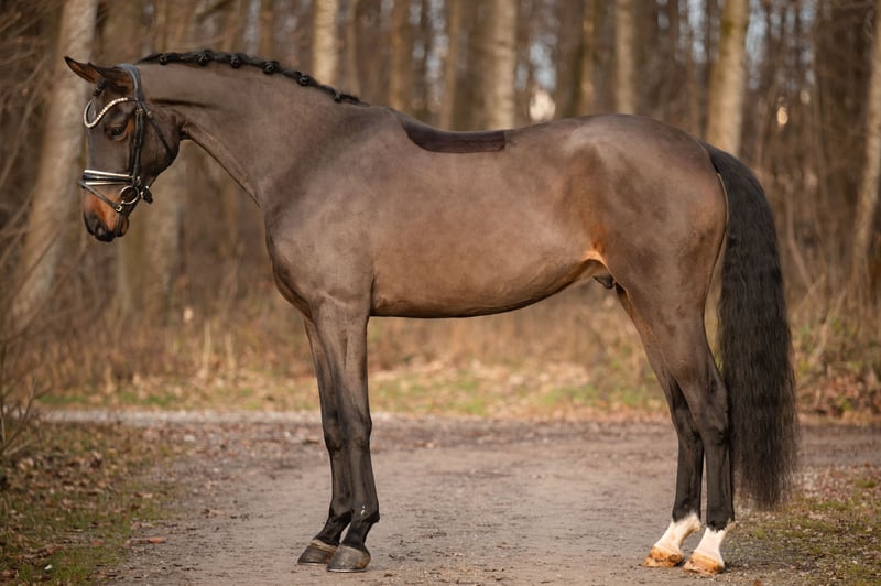 Gentili interessati, Per prenotare un appuntamento per una prova di monta, vi prego di inviarmi un messaggio WhatsApp. Per ulteriori domande, sono disponibile durante il giorno su WhatsApp, mentre il telefono è preferibile contattarlo tra le 16 e le 19. Non vedo l'ora di ricevere il vostro contatto. www.angelina-devittorio.de ⭐️Valentino⭐️ Età: 4 anni (2021) Altezza: circa 1,69 m Lineage: Va Bene x Lord Sinclair I Livello di addestramento: cavallo da dressage / livello DrPf A ACC: Buone radiografie disponibili In vendita un meraviglioso stallone di quattro anni, figlio di Va Bene, che si distingue per una qualità di movimento superiore in tutte e tre le andature di base. Ottimo giovane cavallo con un carattere fantastico e molte prospettive per grandi competizioni! Il suo galoppo si caratterizza per una meccanica eccellente, con un salto in avanti naturale, mentre il trotto si presenta elastico, molto sicuro nel ritmo e fluido, e il passo si distingue per chiarezza nel ritmo e ottimo spazio di estensione. Sempre collaborativo, coraggioso e con una mente lucida, dimostra un carattere equilibrato. Nonostante la sua assoluta idoneità per dilettanti, il suo attuale livello di addestramento richiede ancora un po’ di esperienza con giovani cavalli da parte del cavaliere. Da questo cavallo si sta sviluppando un esemplare di alta qualità, che possiede tutte le caratteristiche per una carriera di successo nel grande anello. ⚜️Tel: 0171-3438949 ⚜️a.devittorio@web.de ⚜️https://www.ehorses.de/angelinadevittorio Facebook e Instagram Angelina De Vittorio
