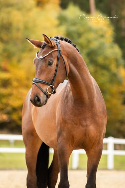 This stylish 4-year-old son of Dynamic Dream has been with us since foalhood and has been under saddle for a good six months now. He impresses everyone daily with his confident and level-headed nature! Always motivated in work and equipped with three very good basic gaits. He simply always wants to do everything right. A horse for every rider—just mount up and enjoy! He is also a real sweetheart in handling, whether it's the farrier, loading, or working with children; he is always curious and absolutely well-behaved. He also enjoys jumping exercises, free jumping, and hacking out in the field. He is familiar with herd and box stabling and gets along very well with other horses. Certainly a horse with a bright sporting future and an absolutely wonderful character. For more details, please contact us by phone or WhatsApp at +49 160 1662003.