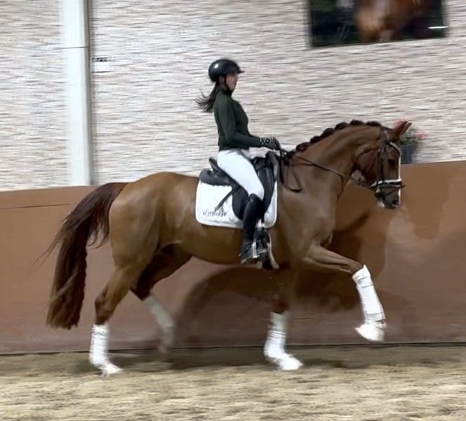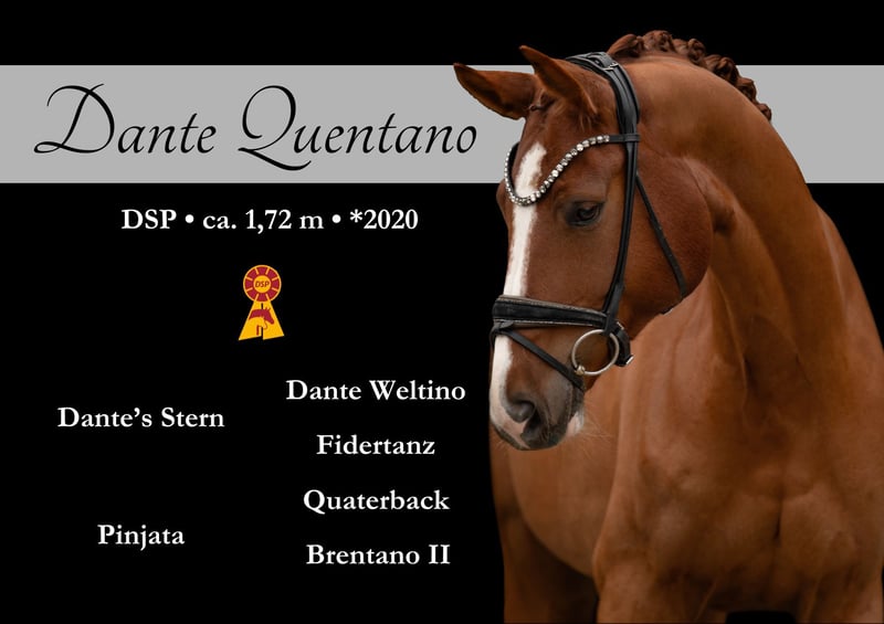 Liebe Interessenten, Für Terminvereinbarungen Probereiten senden Sie mir bitte eine WhatsApp. Für weitere Fragen bin ich tagsüber per WhatsApp erreichbar, telefonisch erreichen Sie mich am Besten zwischen 16 und 19 Uhr. Ich freue mich auf eine Kontaktaufnahme ⭐️Dante Quentano⭐️ Alter: 5 Jahre (2020) Größe: ca. 1,71 m Abstammung: Dante‘s Stern x Quaterback Ausbildungsstand: Dressurpferde A hochplatziert AKU: gute Röntgenbilder vorhanden Zum Verkauf steht Dante, ein hochveranlagter Nachwuchsstar mit wunderschöner Optik und einem modernen Erscheinungsbild. Seine drei hervorragenden Grundgangarten konnte er bereits unter Beweis stellen – er ist mehrfach hochplatziert in Dressurpferde A! Dante ist eine sehr liebenswerter Wallach, der super angenehm zu reiten ist und täglich Freude bereitet . Ein Pferd, das sich auch für jeden ambitionierten Amateur ab gutem A/L-Niveau bestens eignet. Sein Trab mit hervorragender Mechanik und Takt ausgestattet, und sein Galopp überzeugt mit toller Bergauf-Tendenz und viel Raumgriff und sein Schritt überzeugt durch Taktsicherheit und Raumgriff. Auch im Umgang zeigt er sich stets zuverlässig . Ein echtes Traumpferd mit hervorragender Qualität, Top-Charakter und bestem Ausbildungspotenzial. Durch seine Qualität ein ideales Ausbildungspferd für Sport und Freizeit mit Perspektive für deutlich mehr. ⚜️ Tel: 0171-3438949 ⚜️ E-Mail: a.devittorio@web.de ⚜️ https://www.ehorses.de/angelinadevittorio ⚜️ Facebook und Instagram: Angelina De Vittorio ⚜️ Videos bitte per WhatsApp: 0049 171 3438949