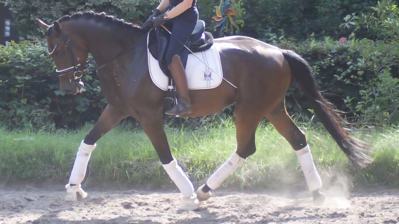 5-jähriger Wallach stk 172cm Dressurpferd mit Herz am richtigen Fleck - motiviert, lernwillig und unerschrocken. Der Wallach wird vielseitig gearbeitet – somit eignet er sich auch für dem ambitionierten Springreiter, da er Spaß und Talent am Sprung zeigt. Er wird von einer Pferdewirtschaftsmeisterin mit Erfolgen in der schweren Klasse professionell und liebevoll ausgebildet. Durch seine Gelassenheit auch problemlos von jungen Reitern zu reiten sowie im Gelände – nichts bringt ihn aus der Ruhe. Röntgenbilder ohne Risikobefund vorhanden. Bei Interesse gerne telefonisch oder per Nachricht Kontakt aufnehmen.