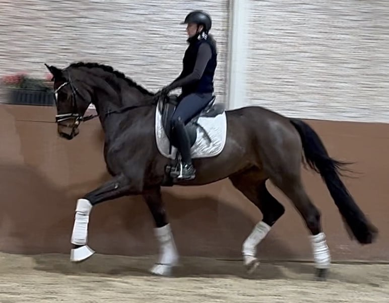 Dear Interested Parties, To arrange a trial ride, please send me a WhatsApp message. For further questions, I am available via WhatsApp during the day, and the best way to reach me by phone is between 4 PM and 7 PM. I look forward to hearing from you. www.angelina-devittorio.de ⭐️ Do you Know Me? ⭐️ Age: 4 years (2021) Height: approximately 16.1 hh Pedigree: Dimaggio Black x Sir Donnerhall II Training level: Placed in young horse tests Veterinary check (AKU): Good X-ray results available Presented in a stallion-like conformation and with impressive beauty, this four-year-old gelding by Dimaggio Black out of a Sir Donnerhall II mare exudes presence. Currently at the level of young horse tests, he impresses as a highly talented young horse that has been gently and horse-appropriately trained, bringing joy every day. He is placed in young horse tests and has also shown calmness and confidence at competitions. Directly from the breeder. With his very clear-headed and gentle nature, he is a promising young horse that will be equally enjoyable for his trainer in training and in everyday handling. He consistently proves to be uncomplicated, brave, and of a lovable character. He is a true treasure in handling as well. His fundamental qualities in all three basic gaits are excellent, and he has everything needed to excel in the big arena in the future. Especially notable are his outstanding walk and fantastic canter! With a beautiful appearance, a clear mind, and an absolutely positive demeanor, this promising young horse is developing into a horse of exceptional quality. Thanks to his very uncomplicated character, he is absolutely suitable for amateurs and well-suited for any rider with young horse experience. ⚜️ Phone: 0171-3438949 ⚜️ Email: a.devittorio@web.de ⚜️ https://www.ehorses.de/angelinadevittorio Facebook and Instagram: Angelina De Vittorio