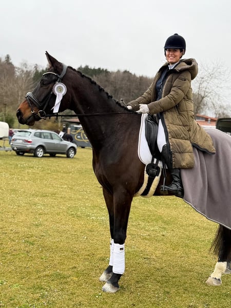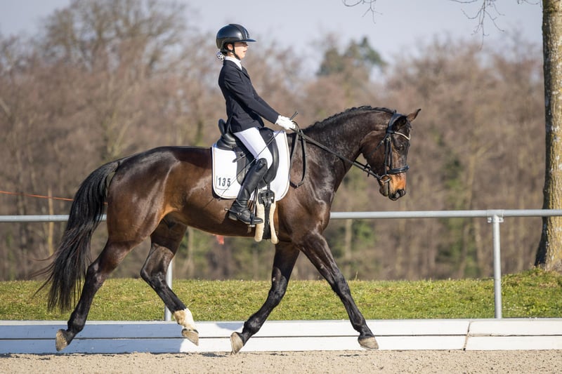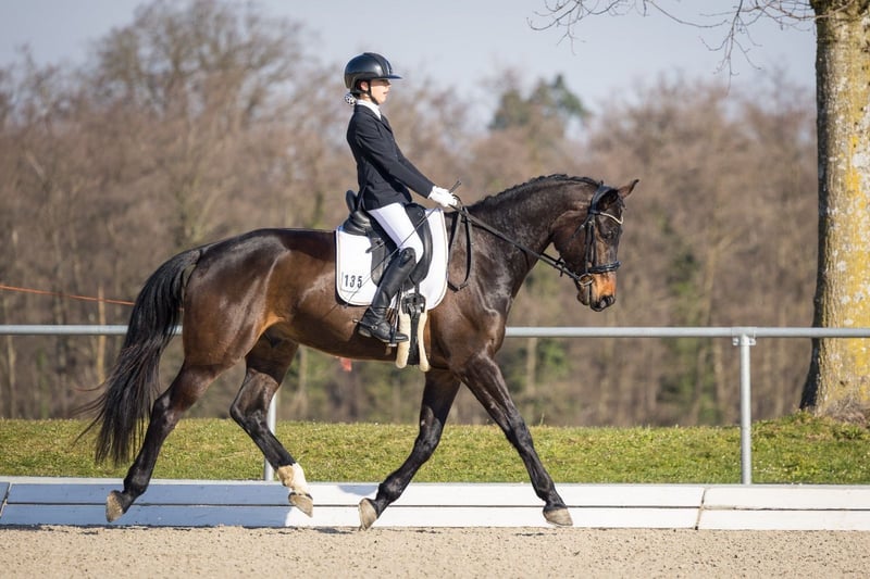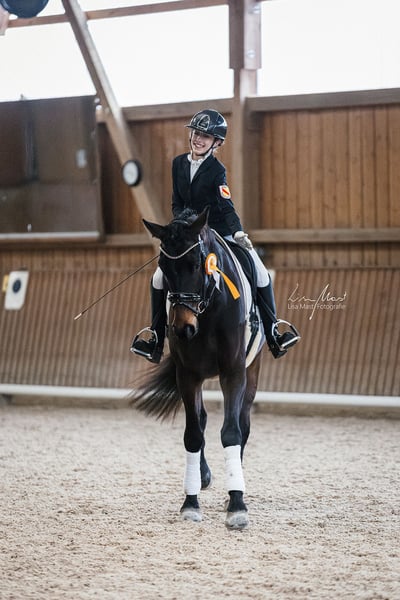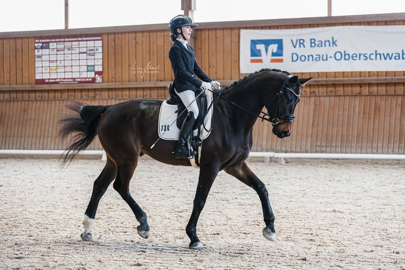 Nervenstarker 5.j Wallach mit außergewöhnlichen Grundgangarten zu verkaufen. Iggy Rock (Goldfohlen von In my Mind) überzeugt nicht nur durch seine imposanten Gänge, seine hohes Maß an Takt und Regelmäßigkeit im Dressurviereck, sondern auch durch seine absolute Abgeklärtheit in jeder Situation. So konnte er sich nicht nur DRA-Prüfungen mit einer Amateur-Reiterin gegen starke Konkurrenz für sich entscheiden, sondern auch eine A*-Dressur, geritten von einer 12-Jährigen, bereits mit einer Note von über 8 gewinnen. Er ist immer brav, egal, ob es auf ein Turnier, zum Auswärtstraining oder ins Gelände (allein oder mit anderen Pferden) geht und in jeder Situation händelbar. Er kennt Boxen- sowie Herden und Offenstallhaltung, ist verladefromm, läuft barhuf oder mit Eisen problemlos Aktuell befindet er sich auf L-Niveau und wartet darauf, weiter ausgebildet zu werden. Röntgenbilder vorhanden. Bitte nur bei ernsthaften Interesse melden.