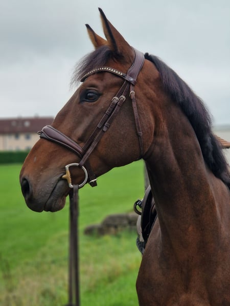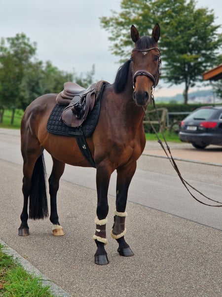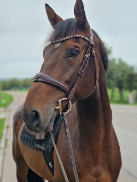 ✨ Charly is 162cm and is being sold as a leisure horse. He is healthy, very easy to handle, and possesses three great gaits. He works beautifully in the arena, not the "fastest/hardest" but also not lazy. He is very comfortable to sit on and is quite soft in the hand and responsive to weight and voice aids; he always wants to do everything right. When jumping, he doesn't look at anything and enjoys it a lot; he doesn't rush and doesn’t need to be pushed - he is the perfect golden mean 🤠 He is absolutely lovable in handling, affectionate, and completely unflappable. He behaves exemplary with everything, whether it’s the farrier (barefoot), veterinarian, or loading - no problem for Charly. In the herd, he is very uncomplicated and gets along with everyone; he loves to play with his buddies but also gets along well with mares. Under saddle, he still lacks a bit of confidence or practice in the field, which makes him occasionally - really only occasionally - looky, but NEVER naughty, and usually only when he is supposed to go ahead :) I find it always manageable, but age-appropriate, he sometimes looks around. When out with another horse, it’s no problem at all. You can also gallop over a meadow or ride through puddles. He is very well-behaved in the field, even in traffic - as long as another horse is leading the way or when in a group. Alone is still not really his thing 😜 he just needs a bit more practice. A GOOD AKU with 22 pictures from September 2024 is available. He is, of course, fully dewormed, vaccinated, and an up-to-date blood test is also available. Charly is currently in training with me and can stay here if desired. I am looking for a wonderful new owner, preferably a place with an open stable or all-day turnout (even in winter)! Only in the very best hands!! Viewing and test riding are possible at any time. ☎ Please feel free to contact me by phone.