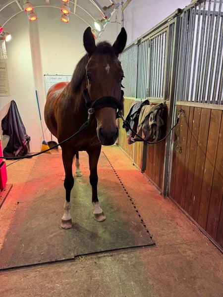 Coco è un bellissimo castrone di 5 anni, il suo talento principale è sicuramente l'inglese. È molto affettuoso e estremamente obbediente nel maneggio. Va in campagna, attraversa l'acqua e salta già in natura. In dressage è molto leggero e facile da cavalcare, con un collo ben rilassato. Tuttavia, non è adatto ai principianti a causa della sua età!