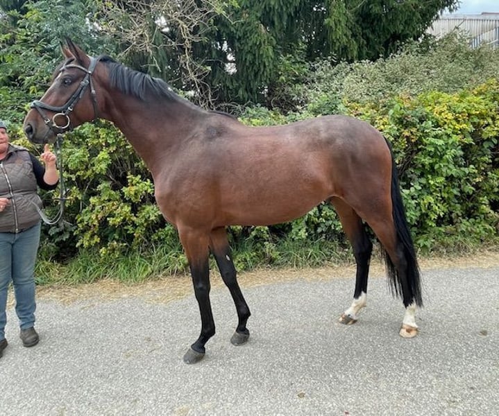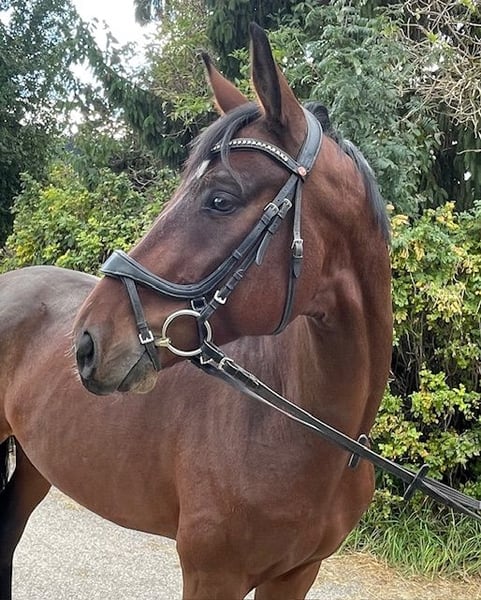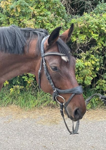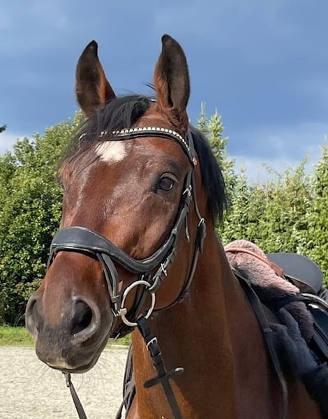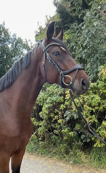 "Doodle Jump", ein sehr sympathischer Wallach mit sehr guten GGA. Doodle kam im Herbst zur weiteren Ausbildung zu uns. Vom ersten Tag an überzeugte er durch seine sympathische Art, er ist sehr brav und lieb im Umgang. Auch beim Tierarzt oder Hufschmied ist er sehr anständig. Er liebt es gekuschelt zu werden und Zeit mit seinem Menschen zu verbringen. Beim Reiten zeigt er eine gute Rittigkeit, geht unerschrocken auf dem Aussenplatz und in der Halle. Schon aufgrund seiner sehr schönen Abstammung, ist davon auszugehen, das hier ein Nachwuchspferd mit den höchsten Rittigkeitsnoten heranwächst. Im Galopp zeigt er eine sehr gute bergauf Tendenz und eine gute Versammlungsbereitschaft, sein Trab ist schwungvoll, gut zu sitzen, der Schritt ist taktsicher und raumgreifend. Er ist vollständig (turniermäßig) geimpft gegen Tetanus, Influenza und Herpes. Vorne ist er beschlagen und er ist immer regelmäßig entwurmt worden. Er besitzt Röntgenbilder o.b.B. Für ein Kennenlernen mit Probereiten wird eine Gebühr von 25 Euro sofort in bar fällig.
