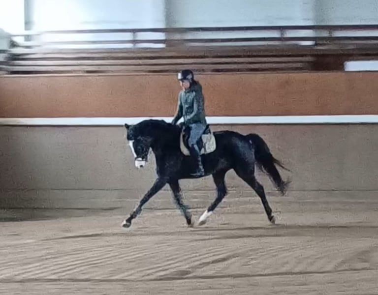 Unser Bugatti SB ist ein echter Hingucker - schön, auffällig und mit absoluter Wiedererkennungsgarantie! Bugatti ist bei uns geboren, menschenbezogen aufgewachsen und wurde zur professionellen Ausbildung in das Brandenburgische Haupt- und Landgestüt in Neustadt/Dosse gegeben. Dort wurde er Ende 2023 schonend und altersgerecht angeritten. Er ist ein kleiner Streber, absolut unkompliziert und begeistert mit seinem entspannten Wesen. Er zeigt drei sehr gute Grundgangarten und hat auch schon ein paar kleine Sprünge in der Freispringbahn absolviert, wobei er mit viel Übersicht bei der Sache war. Da er auf einem Bauernhof geboren wurde und aufgewachsen ist, sind Maschinen wie Traktoren, Hoflader, Mini-Bagger bis hin zu Laubbläsern und Kreissägen absoluter Alltag für ihn. Er ist dabei aufgeschlossen und beobachtet das Geschehen mit totaler Gelassenheit. Der Umgang mit Stuten ist kein Problem - im Stall war seine Pferdebox zwischen zwei Stuten und seine Mutter (mit Fohlen) stand direkt gegenüber. Derzeit befindet er sich in einem gemischten Stall mit Einzelboxen. Sein Vater der Neustädter Hengst Blanc Pain/T. war in der Dressur Kl. S siegreich. Im Jahr 2021 wurde Blanc Pain aufgrund seiner überdurchschnittlichen Eigenleistung im Sport sowie der Qualität seiner ersten beiden Fohlenjahrgänge vom Trakehnerverband mit dem Titel Elite-Anwärter ausgezeichnet! Im Jahr 2024 wurde ein Sohn des Blanc Pain zum Siegerhengst der Trakehner-Körung in Neumünster! Der Vollbruder von Bugatti´s Mutter "Lord Capri SB" konnte bereits seine ersten S-Platzierungen in der Dressur mit seiner Besitzerin sammeln, worauf wir sehr stolz sind. Aufgrund seiner Präsenz und seiner sehr guten Grundgangarten können wir uns Bugatti auch im Fahrsport im Einspänner oder Passgespann sehr gut vorstellen.