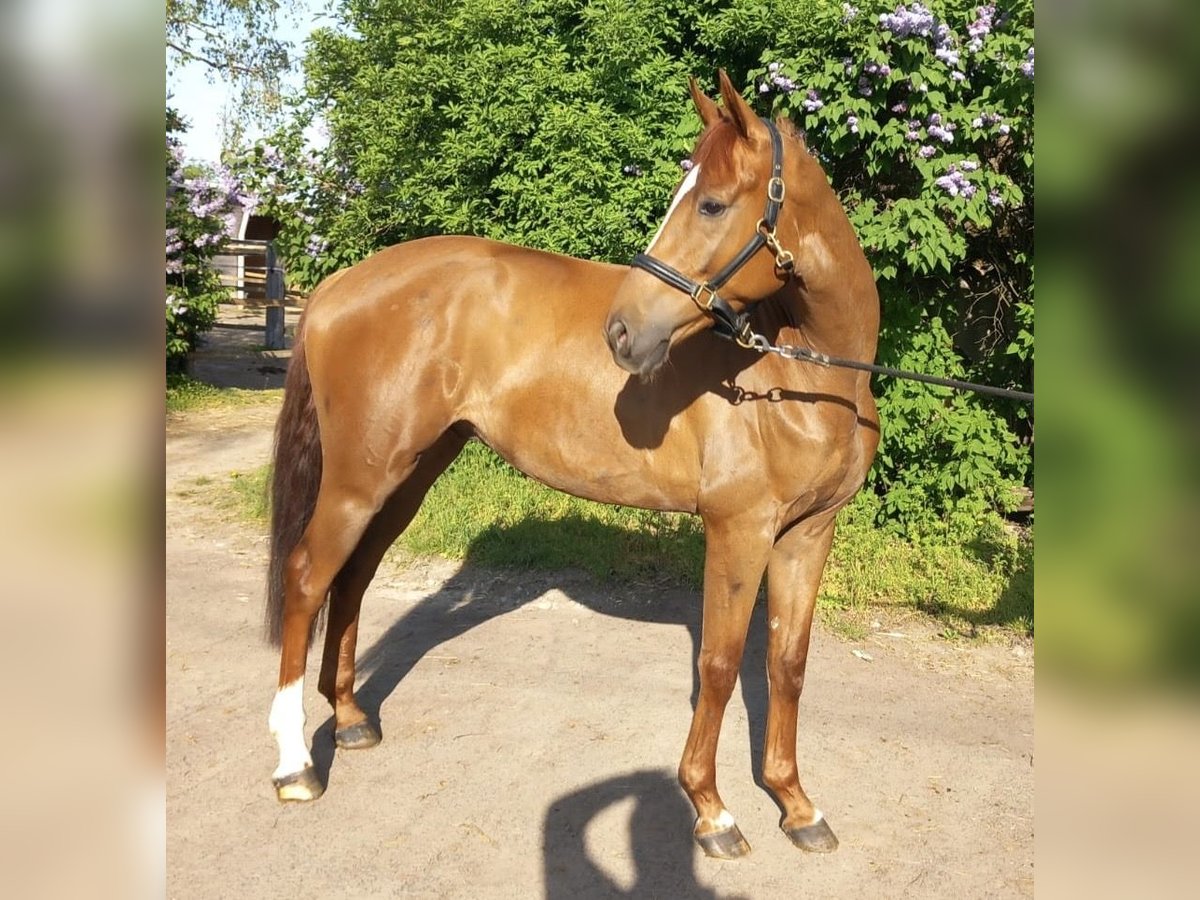 Elegant chestnut gelding, born in 2020, with great potential for dressage. The horse has a harmonious height of 16.1 hh and is well-trained for the demanding requirements of the dressage arena. The well-ridden gelding demonstrates elastic movement, good basic quality, and a pleasant work ethic. Thanks to his friendly nature, he is suitable for both leisure riders and ambitious young riders who value a reliable and talented horse. A true buddy type with plenty of potential for the future!