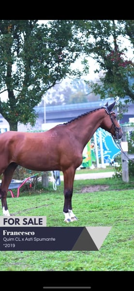 🐴 Francesco – Traumwallach mit Herz & Vermögen 🐴 Francesco ist ein 6-jähriger Wallach, der mit seinem gewaltigen Sprungvermögen und seiner liebenswerten, unkomplizierten Art einfach begeistert. Er ist das perfekte Pferd für alle, die einen verlässlichen Partner suchen. ✨ Charakter & Ausbildung: Francesco ist ein echter Schatz im täglichen Umgang – verschmust, brav und absolut nervenstark. Unter dem Sattel zeigt er sich stets ehrgeizig, lektionssicher und dabei unglaublich einfach zu reiten. Er ist sehr gut ausgebildet und überzeugt mit viel Reitqualität. 🔥 Springen: Sein Sprungvermögen ist beeindruckend – Francesco springt zuverlässig aus jeder Situation, egal ob die Distanz einmal dichter oder weiter ist. Er macht für seinen Reiter alles möglich und vermittelt dabei stets ein sicheres Gefühl. Damit ist er ein idealer Partner für Amateure, Einsteiger oder Children, die Spaß am Reiten haben und sich weiterentwickeln möchten. 💖 Kurz gesagt: Francesco ist ein echter Allrounder mit Herz, der durch seine Rittigkeit, Gutmütigkeit und Leistungsbereitschaft besticht. Ein Pferd, das man einfach lieben muss – der perfekte beste Freund auf vier Hufen!
