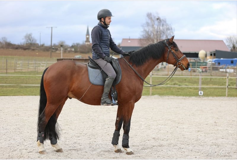 Kéos est un cheval de sport Allemand PP de 6 ans d’1m70. Kéos est un cheval porteur avec de la force et d’une grande gentillesse. Avec lui tout est simple, le travail, les soins, les transports, le quotidien…. Il sort seul en extérieur ou a plusieurs bien sûr! Très attachant, il sera vous faire craquer par sa facilité et sa douceur ! Travail basse école ok, il n’attend que son futur cavalier pour évoluer en toute simplicité. Il est aussi calé au travail à pied et longues rennes À jour suivi vétérinaire, ostheo, dentiste, maréchalerie… 18000 négociable