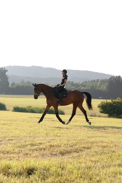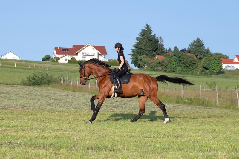 Erlkönig ist ein 6-jähriger Wallach von Emanuel (Escolar – Lauries Crusador xx) x Finest x Desperados mit vielversprechender Abstammung. Er überzeugt mit einem guten Schritt, einem sehr schwungvollen Trab sowie einem ausbalancierten Galopp. Aktuell ist er angeritten und hat ein Stockmaß von ca. 1,80 m. Erlkönig ist ein freundliches, menschenbezogenes Pferd mit großem Potenzial für den gehobenen Sport. Aufgrund von Zeitmangel konnte er bisher leider nicht entsprechend gefördert werden, weshalb ich mir für ihn einen Besitzer wünsche, der ihn altersgerecht weiter ausbildet und sein Talent gezielt fördert. Er ist sehr sozialverträglich und steht derzeit problemlos im Offenstall zusammen mit einer Stute. Im Umgang zeigt er sich stets brav und angenehm – sowohl gegenüber Menschen als auch anderen Pferden. Besonders hervorzuheben ist seine Geländesicherheit: Erlkönig ist absolut unerschrocken und kennt bereits Verkehr, landwirtschaftliche Maschinen wie Bulldogs sowie Bagger und Baustellen. Auch auf fremden Anlagen zeigt er sich stets übersichtlich, souverän und jederzeit gut handelbar. Der Verkauf fällt mir nicht leicht und erfolgt ausschließlich aufgrund veränderter Lebensumstände. Daher wünsche ich mir für Erlkönig ein liebevolles Zuhause, in dem er die Aufmerksamkeit und Förderung erhält, die er verdient. Videos können gerne auf Anfrage versendet werden. Ein Probereiten ist nach Absprache selbstverständlich möglich. Für das Probereiten werden 25 € berechnet, die beim Kauf verrechnet werden.