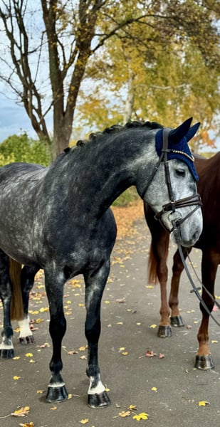 It is truly very difficult for me to write this ad. I am looking for a five-star home for my best friend. Diko, sired by Diacontinus out of Stakkato Gold, is a 6-year-old gelding approximately 16.2 hh. He has been with me since his first year of life. Diko has never taken a wrong step in his life; he is always 100% well-behaved, whether during lunging or at competitions. He loads alone without any issues and remains remarkably calm at all times. He has already competed in show jumping classes and has always been well-behaved there as well. I could see him as a suitable riding horse or beginner’s horse for a smaller rider. He also rides nicely in dressage. I am offering him because he is unfortunately a bit too small for me, and I want to continue developing in dressage. Most importantly, I want this horse to be a top priority for someone. Diko occasionally still nibbles at his feed, but this has never caused any problems. He was also operated on at the eye as a two-year-old, and chips were removed. The horse will only be placed in proven, caring hands—no dealers! It is very important to me that everything fits perfectly; therefore, quality takes precedence over price. Contact only by phone or WhatsApp: 0173-4507321