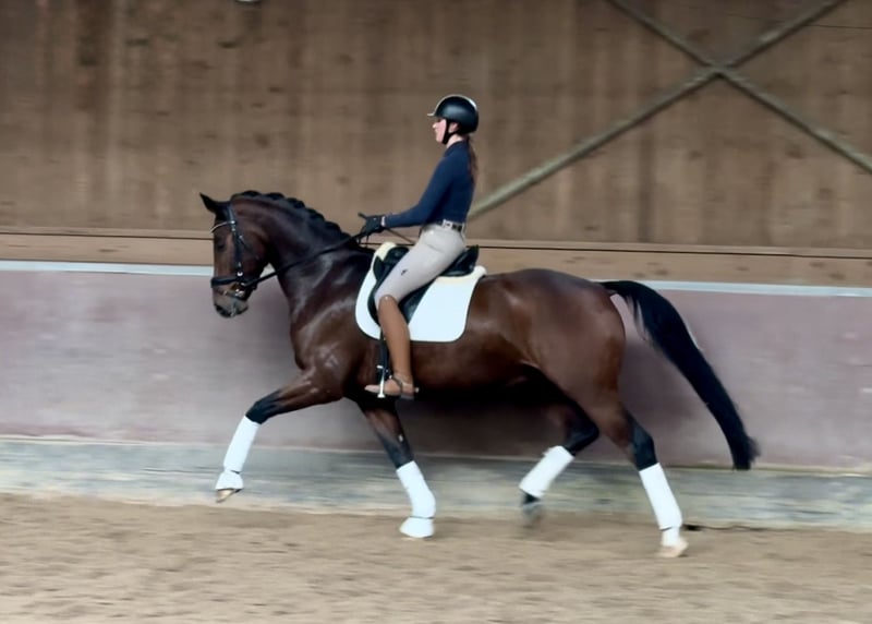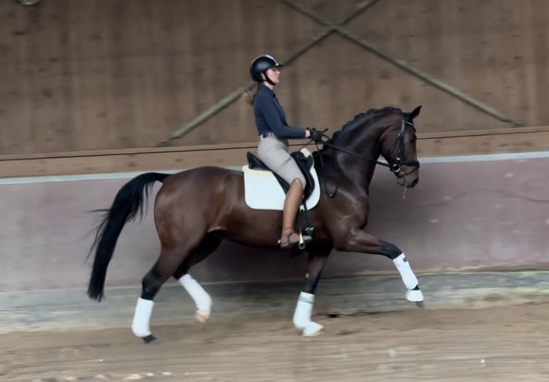 Sehr rittiger und lernfreudiger Wallach mit guten GGA, Dressurpferd A und L platziert. Sicher in den Lektionen der Klasse M, lernt gerade Serienwechsel und Pirouetten.