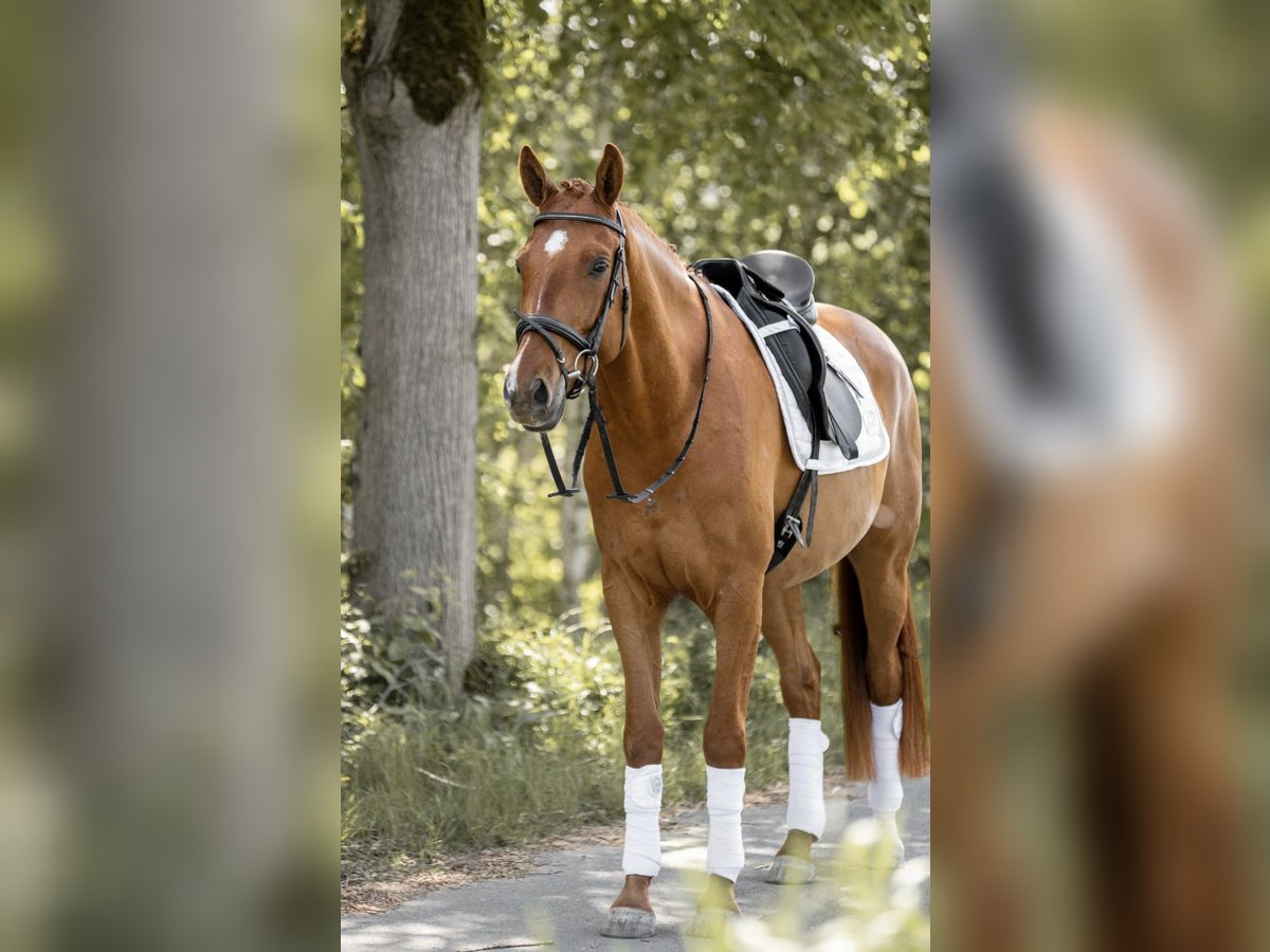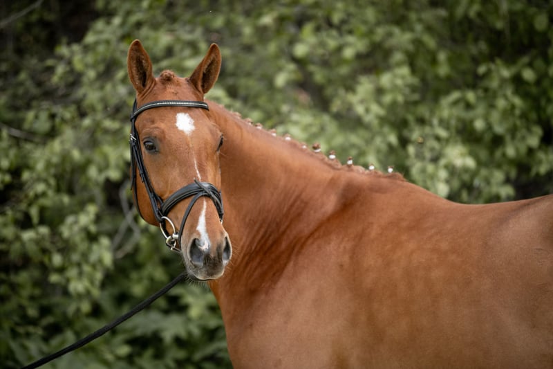 For sale is a promising German sport horse gelding, born in 2019. The elegant chestnut impresses with his impressive height of 16.1 hh and his affectionate temperament. He is ideally suited for dressage and already shows promising potential in his training. With his friendly nature and reliable demeanor, he is an excellent partner for ambitious and experienced riders who value a good and steady dressage horse. This talented athlete combines a strong willingness to perform with a pleasant character and is eager for a new sporting challenge. Despite his gentle nature, he is not suitable for beginners or children.