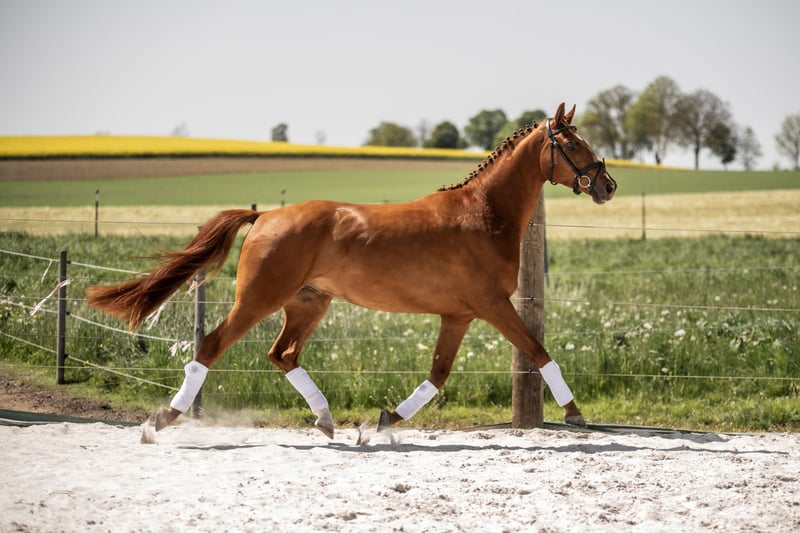 Zum Verkauf steht ein vielversprechender Deutscher Sportwallach, geboren im Jahr 2019. Der elegante Fuchs überzeugt durch sein beeindruckendes Stockmaß von 172 cm und seinen liebevollen Charakter. Er ist bestens für den Dressursport geeignet und zeigt bereits vielversprechende Ansätze in der Ausbildung. Mit seinem freundlichen Wesen und seiner zuverlässigen Art ist er ein idealer Partner für ambitionierte und erfahrene Reiter, die Wert auf ein gutes und stabiles Dressurpferd legen. Dieser talentierte Sportler verbindet Leistungsbereitschaft mit einem angenehmen Charakter und freut sich auf eine neue sportliche Herausforderung. Trotz seines lieben Wesens ist er kein Anfänger oder Kinderpferd.