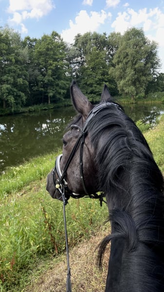 With a heavy heart, I am selling my 7-year-old gelding Danci (born 2019), approximately 1.80 m in height, whom I have owned since he was a foal. Danci is a sensitive and alert gelding, currently trained at solid A-level. He is familiar with both riding work and groundwork. In the field, he enjoys going out in company or in a group and behaves well in all three gaits. Danci is not suitable for beginners and requires an experienced, confident rider. He is uncomplicated in handling: farrier-friendly, well-behaved at the vet, easy to load (also alone), and experienced with the treadmill. He is a very social horse. A grain intolerance should be taken into account in his feeding regimen. X-rays of his back are available. If genuinely interested, I look forward to hearing from you.