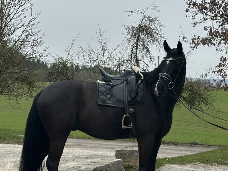 Schweren Herzens verkaufe ich meinen 7-jährigen Wallach Danci (geb. 2019), Stockmaß ca. 1,80 m, den ich seit Fohlenalter besitze. Danci ist ein sensibler und wacher Wallach, der aktuell auf solidem A-Niveau gearbeitet wird. Er kennt sowohl die Arbeit unter dem Sattel als auch vom Boden aus. Im Gelände geht er gerne in Begleitung oder in der Gruppe und zeigt sich dabei brav in allen drei Gangarten. Danci ist kein Anfängerpferd und benötigt einen erfahrenen sowie sattelfesten Reiter. Im Umgang ist er unkompliziert: schmiedefromm, brav beim Tierarzt, problemlos verladefromm (auch alleine) und laufbanderfahren. Er ist ein sehr soziales Pferd. Eine Getreideunverträglichkeit sollte in der Fütterung berücksichtigt werden. Röntgenbilder vom Rücken liegen vor. Bei ernsthaftem Interesse freue ich mich über eine Nachricht.