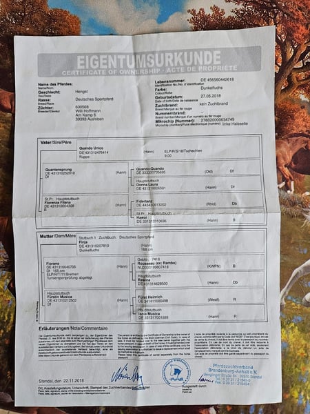 Querido y hermoso caballo de color alazán busca un nuevo dueño que le dé mucho cariño. Edad: 8 años Altura: aproximadamente 1,68 m Quinn ya está acostumbrado a trabajar desde el suelo. En esto, siempre ha demostrado ser muy dispuesto y bien educado. También ha tenido la oportunidad de experimentar el peso de un jinete, aunque de forma breve. Para más detalles, estamos encantados de proporcionarlos en persona. Por falta de tiempo y por una reducción en la cantidad de caballos, este bonito ejemplar busca un nuevo hogar donde pueda seguir siendo fomentado y entrenado. Su trotón, elegante y con buen impulso, hace latir más fuerte los corazones de los amantes de la doma clásica. Por supuesto, Quinn tiene toda la documentación en regla. Un hogar bonito y lleno de cariño es muy importante para nosotros. Por eso, ante todo, valoramos el bienestar del caballo.