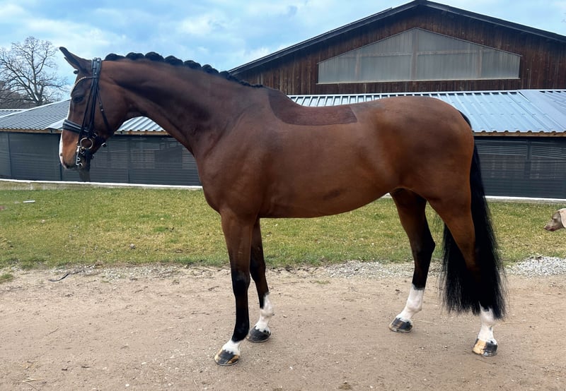 Geschlecht: Wallach Alter: 8 Jahre Farbe: Braun Stockmaß: ca. 170 cm Zuchtverband: Deutsches Sportpferd (DSP) Abstammung: V: Fürst Wilhelm, MV: Carpaccio TÜV: gute Röntgenbilder vorhanden Preis: 95.000,00 € Standort: 86860 Weicht (Bayern) Zum Verkauf steht ein äußerst qualitätsvoller 8-jähriger Wallach mit einem Stockmaß von ca. 1,70 m, der sich seit dem Fohlenalter in unserem Besitz befindet. Er überzeugt mit herausragender Rittigkeit, feiner, leichter Anlehnung und einem außergewöhnlich weichen Sitzgefühl. Besonders bemerkenswert: Er ist auf Trense ebenso schön zu reiten wie auf Kandare. Charakterlich präsentiert er sich als sehr lieb, unkompliziert und angenehm im täglichen Umgang, nicht kuckig, turniererfahren und unkompliziert sowie auch im Gelände brav. Damit ist er ein ideales Pferd für Children, Junioren, Amateure und ebenso ein ausgesprochen attraktives Damenpferd. Sportlich ist er bereits M** platziert mit 69 % und M* siegreich mit Noten bis 8,8. Gleichzeitig steht er voll in der Entwicklung und wird schonend und mit Blick auf eine langfristig erfolgreiche Karriere weiter ausgebildet. Alles deutet darauf hin, dass er sich zu einem absolut lektionssicheren kleinen Tourpferd entwickeln wird. Auf der Mutterseite finden sich mehrere Grand-Prix-Pferde sowie ein Prämienhengst im nahen Verwandtschaftskreis. Guter TÜV vorhanden, viermal beschlagen. Auch für Reiter mit internationalen Ambitionen, etwa in Richtung Asian Games, hochinteressant. Preis: 95.000 € Da sich das Pferd weiterhin in sportlicher Förderung befindet, weisen wir darauf hin, dass der Preis bei weiteren nachweisbaren Erfolgen in Richtung S-Dressur entsprechend angepasst wird. Bei ernsthaften Interesse freuen wir uns über eine Kontaktaufnahme. Lisa-Maria Klössinger 016097726106 📍GESTÜT SCHORER Frankenhofener Str. 3 86860 Jengen/Weicht